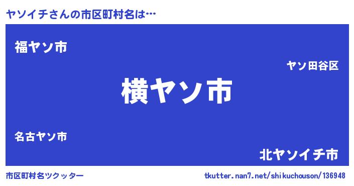 | 男性向けラノベタイトル風あだ名 | 『Re:ヤソイチから始める異世界生活』 |