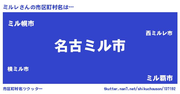 | ファンタジー風あだ名 | 『エターナルミルレー』『ミルディッシュ』 |