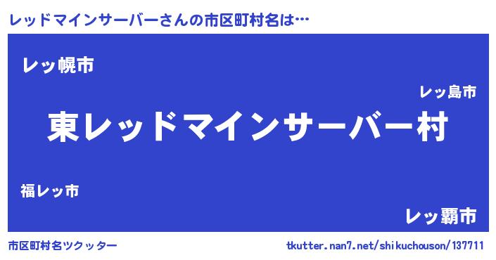 | 男性向けラノベタイトル風あだ名 | 『レッドマインサーバーの憂鬱』 |