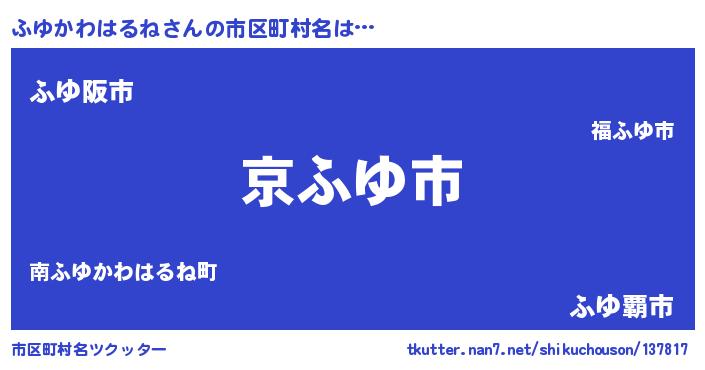 | 男性向けラノベタイトル風あだ名 | 『この素晴らしい世界にふゆかわはるねを!』 |