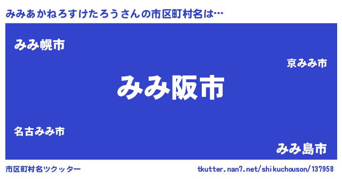 | 男性向けラノベタイトル風あだ名 | 『みみあかねろすけたろうの嫁は女の子じゃないと思った?』 |