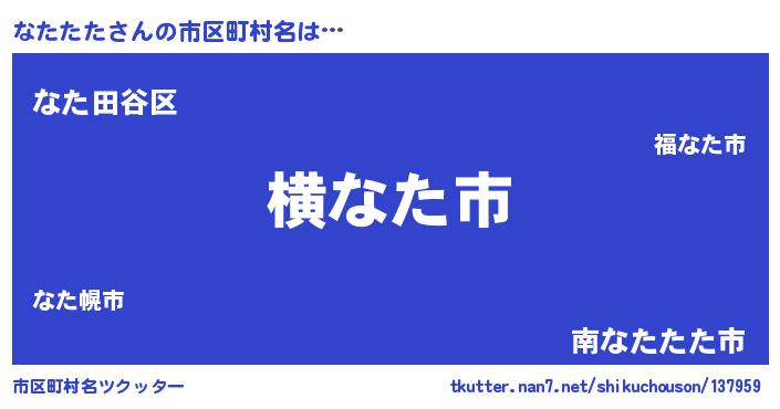 | 男性向けラノベタイトル風あだ名 | 『Re:なたたたから始める異世界生活』 |