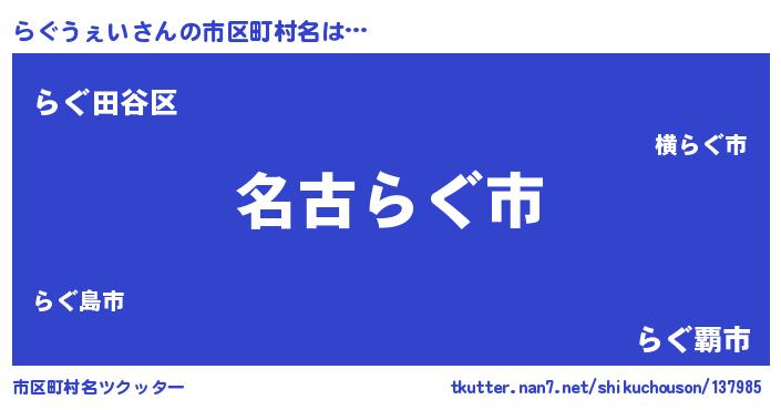 | 意味不明あだ名 | 『永久保存らぐうぇい』『自称らぐうぇい』 |