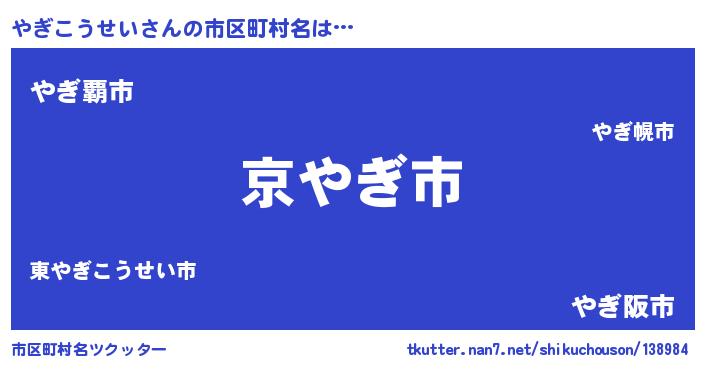 | 男性向けラノベタイトル風あだ名 | 『この素晴らしい世界にやぎこうせいを!』 |