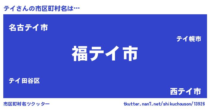 | 男性向けラノベタイトル風あだ名 | 『テイ~年齢イコール彼女いない歴の魔法使い~』 |