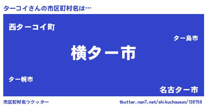 | 男性向けラノベタイトル風あだ名 | 『Re:ターコイから始める異世界生活』 |