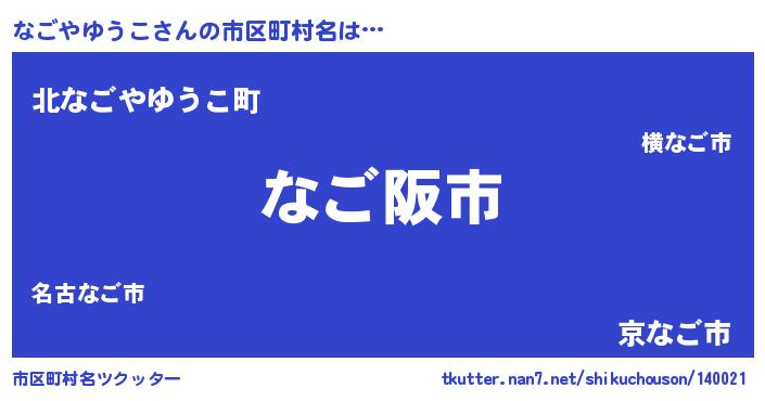 | 女子向けラノベタイトル風あだ名 | 『なごやゆうこの卵を拾いまして』 |