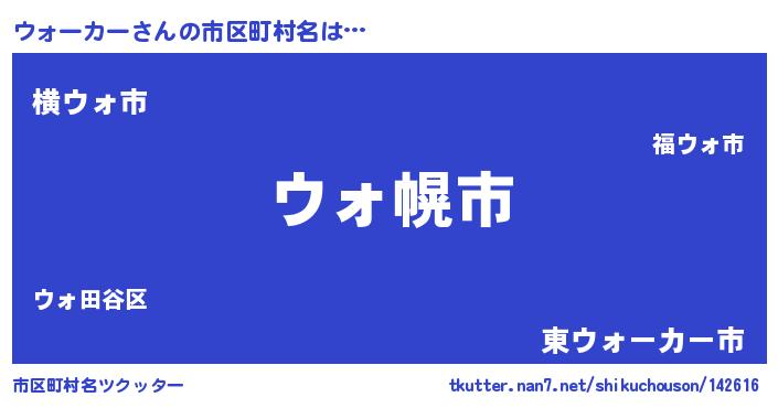 | 肩書あだ名 | 『ウォーカー総理大臣』『ウォーカー閣下』 |