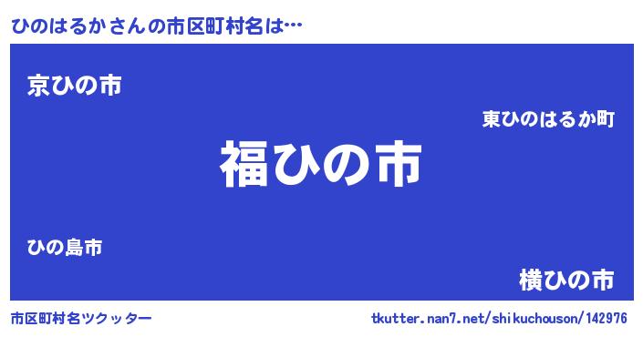 | 男性向けラノベタイトル風あだ名 | 『ひのはるか~年齢イコール彼女いない歴の魔法使い~』 |