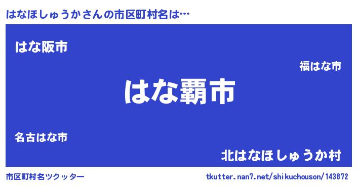 | ヒーロー風カッコイイあだ名 | 『ネオハナホシュウカ』『黄金騎士ハナ』 |