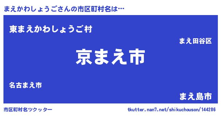 | 男性向けラノベタイトル風あだ名 | 『魔弾の王とまえかわしょうご』 |