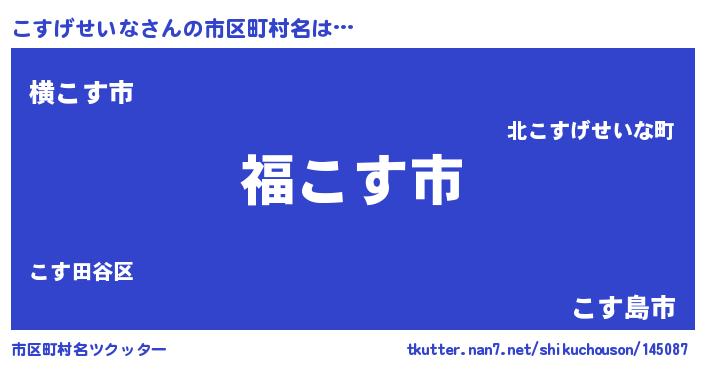 | 男性向けラノベタイトル風あだ名 | 『こすげせいな~年齢イコール彼女いない歴の魔法使い~』 |