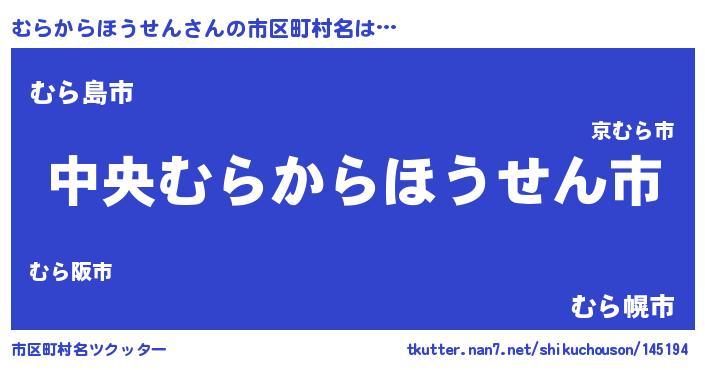 | 男性向けラノベタイトル風あだ名 | 『むらからほうせんの憂鬱』 |