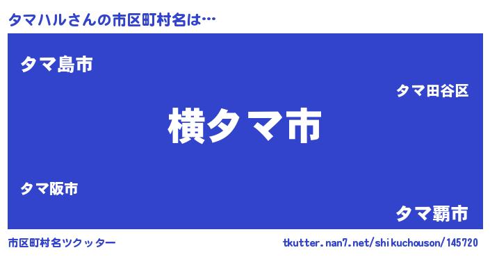 | 男性向けラノベタイトル風あだ名 | 『Re:タマハルから始める異世界生活』 |