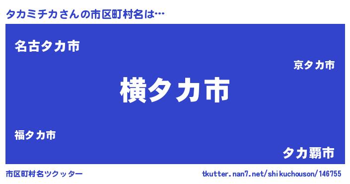 | 男性向けラノベタイトル風あだ名 | 『Re:タカミチカから始める異世界生活』 |