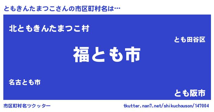 | 男性向けラノベタイトル風あだ名 | 『ともきんたまつこ~年齢イコール彼女いない歴の魔法使い~』 |