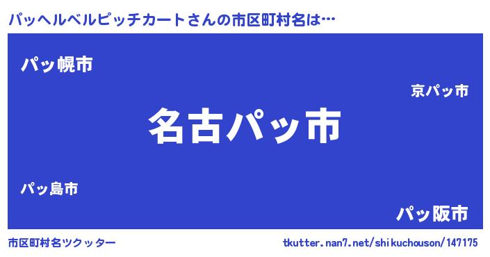 パッヘルベルピッチカートさんの市区町村名は… 『名古パッ市』『パッ幌市』『パッ阪市』 ツクッター #市区町村名ツクッター http://tkutter.nan7.net/shikuchouson/147175/