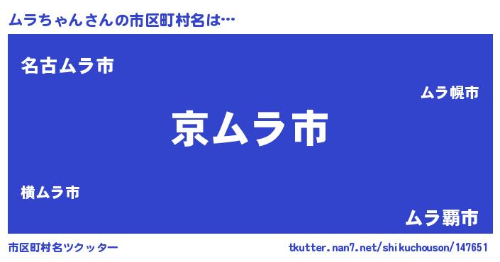 | 男性向けラノベタイトル風あだ名 | 『この素晴らしい世界にムラちゃんを!』 |