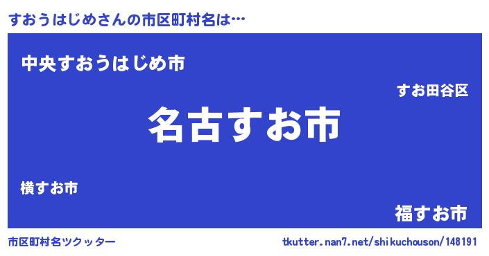| 男性向けラノベタイトル風あだ名 | 『すおうはじめに滅ぼされるだけの簡単なお仕事です』 |