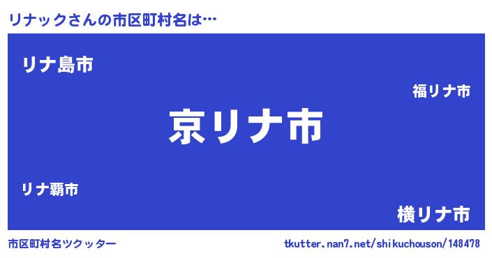| 男性向けラノベタイトル風あだ名 | 『この素晴らしい世界にリナックを!』 |