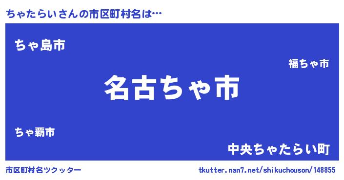 | ヘコむあだ名 | 『ちゃっふぃ~』『ちゃたらい(震え声)』 |