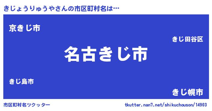 | 意味不明あだ名 | 『住所不定無職きじょうりゅうや(2歳)』 |