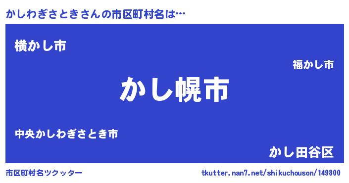 | 肩書あだ名 | 『かしわぎさとき総理大臣』 |