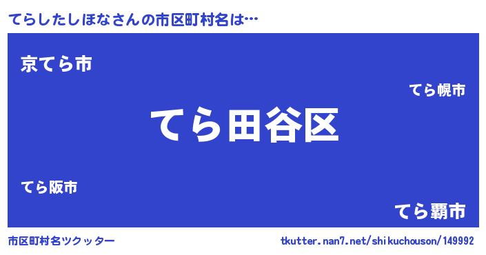 | 意味不明あだ名 | 『住所不定無職てらしたしほな(53歳)』 |