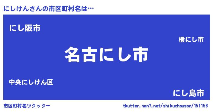 | ポケモン風あだ名 | 『ニシゴンZ』『ヒニシケン』 |