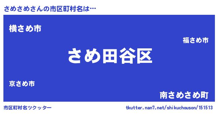 | ヘコむあだ名 | 『さめふぇ~』『さめさめ(遠い目)』 |