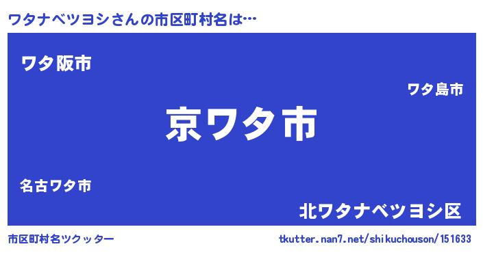 | ポケモン風あだ名 | 『ワータイ』『ヒワタナベツヨシ』 |