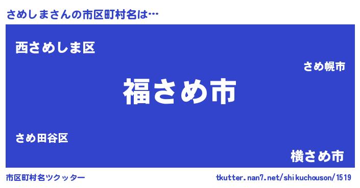 | 男性向けラノベタイトル風あだ名 | 『さめしま~年齢イコール彼女いない歴の魔法使い~』 |
