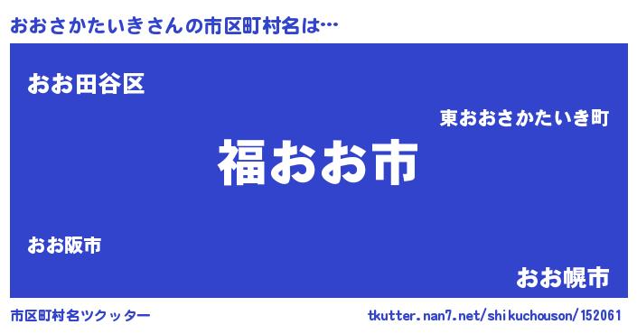 | 男性向けラノベタイトル風あだ名 | 『転生したらおおさかたいきだった件』 |