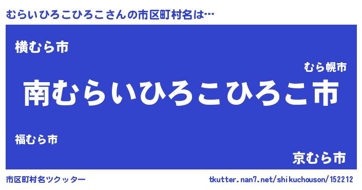 | 男性向けラノベタイトル風あだ名 | 『ムライヒロコヒロコアートオンライン』 |