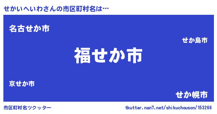 | 男性向けラノベタイトル風あだ名 | 『せかいへいわ~年齢イコール彼女いない歴の魔法使い~』 |