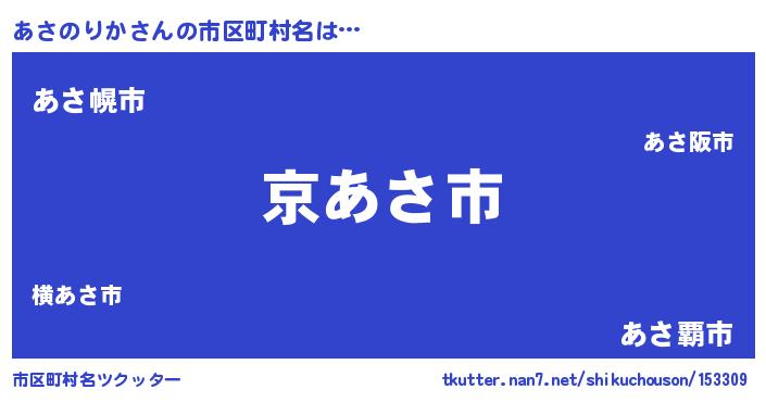 | 男性向けラノベタイトル風あだ名 | 『この素晴らしい世界にあさのりかを!』 |