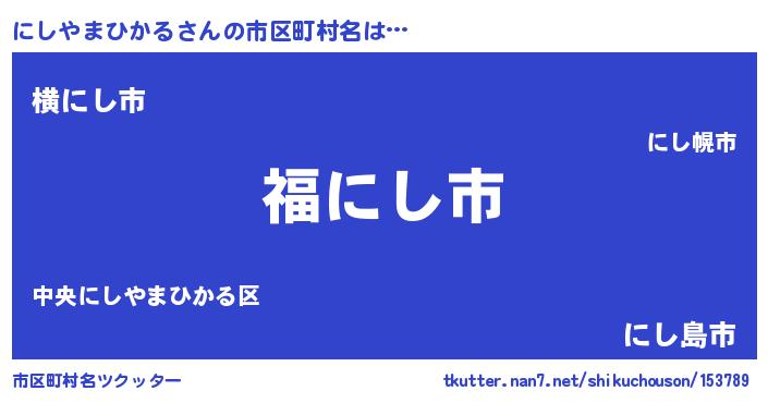 | 男性向けラノベタイトル風あだ名 | 『にしやまひかる~年齢イコール彼女いない歴の魔法使い~』 |