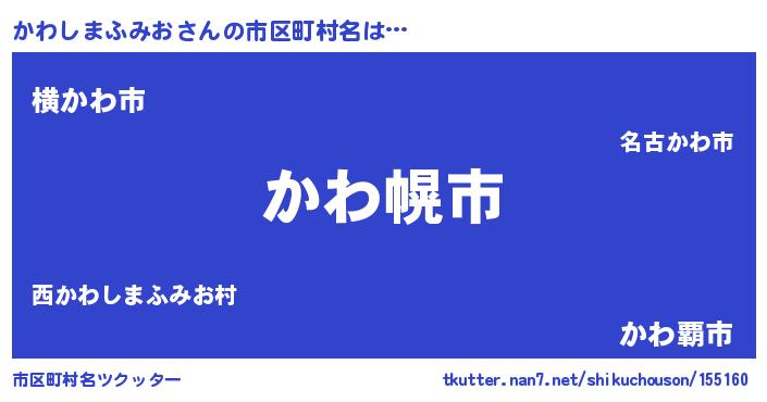 | 男性向けラノベタイトル風あだ名 | 『やはりかわしまふみおの青春ラブコメはまちがっている 』 |