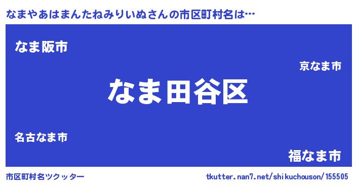 | 料理風あだ名 | 『なまやあはまんたねみりいぬの炊き込みご飯』 |