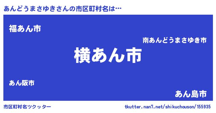 | 男性向けラノベタイトル風あだ名 | 『Re:あんどうまさゆきから始める異世界生活』 |