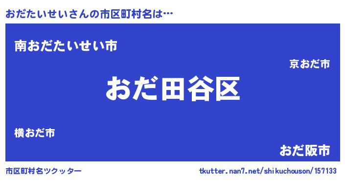 | 男性向けラノベタイトル風あだ名 | 『うちのおだたいせいが世界を掌握している!』 |
