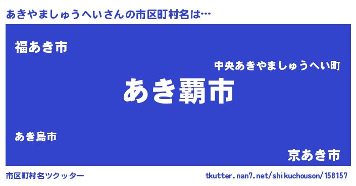 | 男性向けラノベタイトル風あだ名 | 『あきやましゅうへいという概念が存在しない退屈な世界 』 |