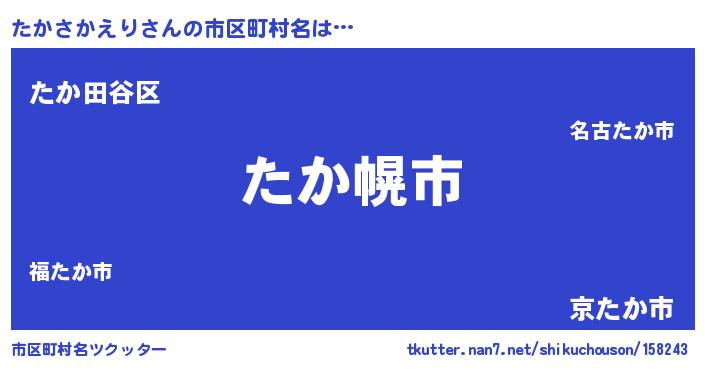| 意味不明あだ名 | 『たかさかえりフォーエバー』 |