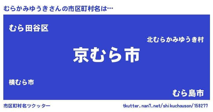 | 男性向けラノベタイトル風あだ名 | 『魔弾の王とむらかみゆうき』 |