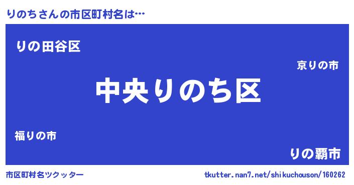 | 男性向けラノベタイトル風あだ名 | 『りのちの憂鬱』『魔弾の王とりのち』 |