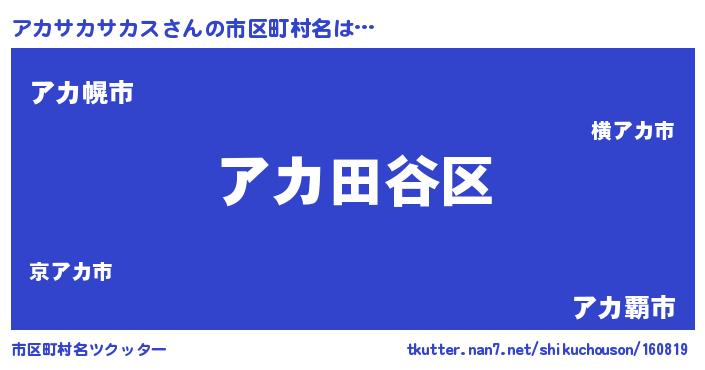 | 男性向けラノベタイトル風あだ名 | 『うちのアカサカサカスが世界を掌握している!』 |