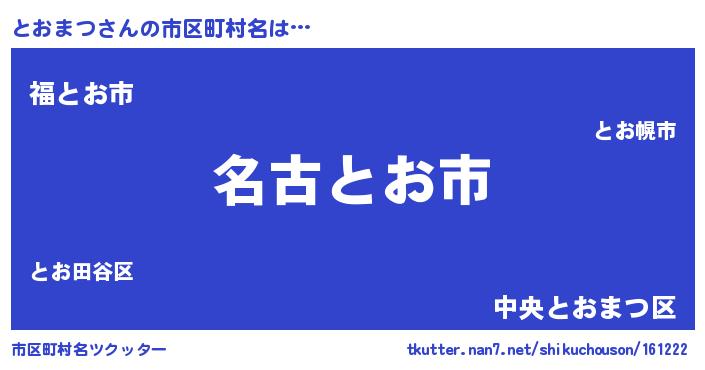 | 男性向けラノベタイトル風あだ名 | 『とおまつに滅ぼされるだけの簡単なお仕事です』 |