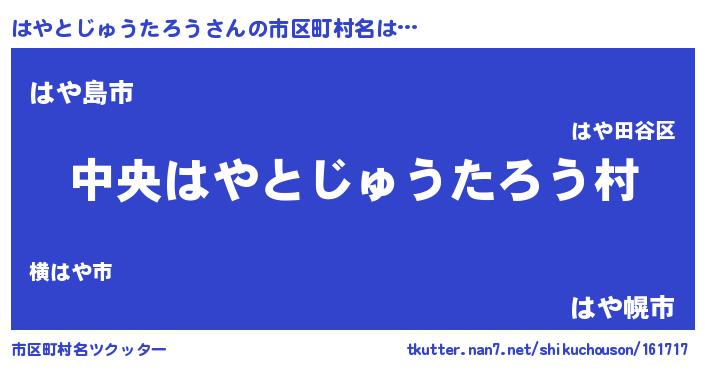 | 男性向けラノベタイトル風あだ名 | 『はやとじゅうたろうの憂鬱』 |