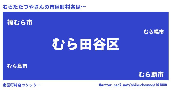 | 男性向けラノベタイトル風あだ名 | 『うちのむらたたつやが世界を掌握している!』 |