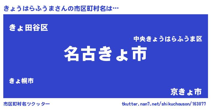 | 意味不明あだ名 | 『住所不定無職きょうはらふうま(65歳)』 |